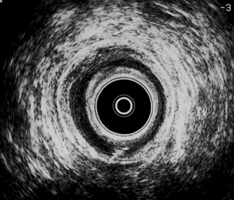 CANAL ANAL MEDIO: Con agua oxigenada se evidencia imagen hiperecoica a las 6 h a nivel submucosa, compatible con orificio interno fistuloso posterior (flecha)